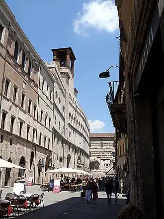 La voie qui est située dans le centre historique de la ville sur l'ancien cardo étrusco-romain, part de la Piazza IV Novembre et se termine Piazza Italia. Elle est bordée d'importants palais : le Palazzo dei Priori, le Collegio del Cambio, le Collegio della Mercanzia, la Sala dei Notari (XVe siècle), la Casa di Baldo degli Ubaldi (XVe siècle), l'église Sant'Isidoro (déconsacrée), le Palazzo Donini (1716).[2]