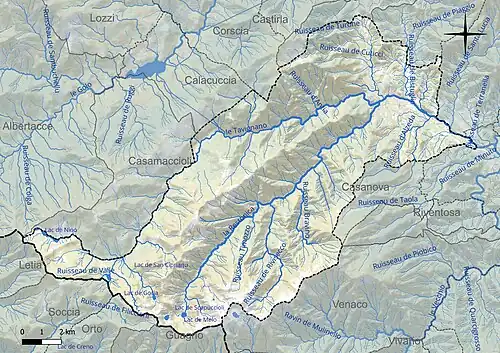 - ↑ Sandre, « Fiche cours d'eau - Ruisseau de l'Olmo (Y9011240) » (consulté le ).