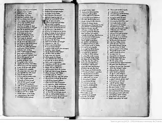 - BNF, Titre : Recueil de fabliaux, dits, contes en vers, « Des.III. avugles de Compiengne », par « CORTEBARBE » (fol. 73), Bibliothèque nationale de France, Département des manuscrits, Français 837 gallica.bnf.fr