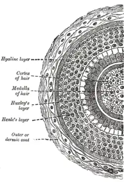 Le cortex pilaire, appelé aussi écorce, est la couche intermédiaire de la tige pilaire située entre la cuticule et le medulla. Elle est formée de couches de cellules mortes constituées de kératine et détermine la plupart des propriétés physiques du poil : la solidité et la résistance (vigueur du cheveu par exemple), l’élasticité, la direction et le type de repousse, mais aussi la couleur qui provient de la pigmentation de la couche corticale due à la présence de mélanine[1].