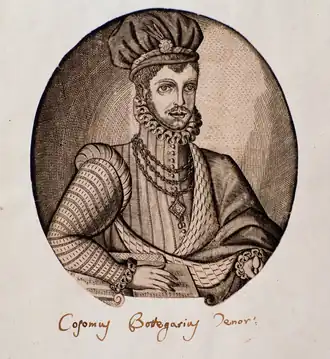Cosimo Bottegari, favori du duc, entre en rivalité avec Roland de Lassus, Kapellmeister depuis 1563. Une gravure intitulée Cosmus Bottegarius Tenor, le montre portant le collier d'or offert par le duc Albert en 1573.