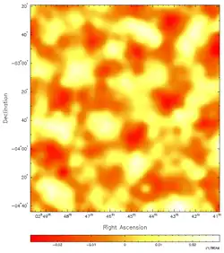 - ↑ (en) S. Padin, J. K. Cartwright, B. S. Mason, T. J. Pearson, A. C. S. Readhead, M. C. Shepherd, J. Sievers, P. S. Udomprasert, W. L. Holzapfel, S. T. Myers, J. E. Carlstrom, E. M. Leitch, M. Joy, L. Bronfman et J. May, « First Intrinsic Anisotropy Observations with the Cosmic Background Imager », The Astrophysical Journal, vol. 549, no 1, , L1–L5 (DOI 10.1086/319142).