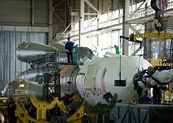 Soyouz TMA-02M en cours de positionnement vertical.
