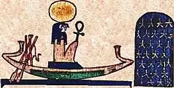 À Memphis. Au début des temps, Ptah le démiurge, issu du Noun, l'océan primordial, prit conscience de son existence. Puis il prit le limon de la terre, créant et modelant l'Homme. Aussitôt son œuvre créatrice terminée, il céda la place à son successeur Rê, le soleil. Rê, seigneur d'Héliopolis, parcourt chaque jour son domaine dispensant à l'humanité dons et bienfaits. Voir le Mythe de la création memphite.