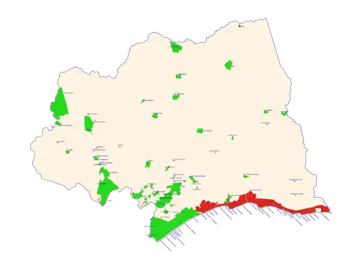 La Costa de Oro se caractérise par une succession quasi ininterrompue de plages qui ont vu naître, depuis le début du XXe siècle, un chapelet de stations balnéaires. Jusqu'au , Atlántida était le centre le plus important mais, à cette date, les localités comprises entre l' arroyo Carrasco[1] et la rivière Pando furent réunies pour former Ciudad de la Costa (en fait, une extension de l’aire métropolitaine de Montevideo vers l’est).