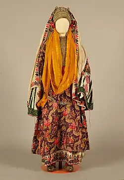 - ↑ (el) Ioánna Pappantoníou, Η Ελληνική ενδυμασία. Από την αρχαιότητα ως τις αρχές του 20ου αιώνα [« Le costume grec. De l'antiquité au début du 20e siècle »], Athènes, Εμπορική Τράπεζα της Ελλάδος, (ISBN 978-960-7059-10-9), p. 121.