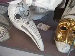 Le costume est également associé à un personnage de la commedia dell'arte appelé Il Medico della Peste. Ce personnage porte un masque vénitien typique dont la forme macabre ressemblant à un vautour est due à Charles de Lorme, premier médecin de Louis XIII. Le masque vénitien était normalement blanc, composé d'un bec creux, de deux trous destinés à être recouverts de bésicles de protection.