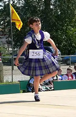 Traditionnellement, les femmes ne portent pas le kilt, mais de longues jupes de tartan s'arrêtant à la cheville. Dans le cas de port d'une robe, une écharpe de tartan, le sash, est portée sur l'épaule, fixée par une broche reprenant le symbole du clan, ou crest.