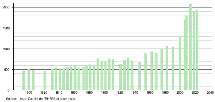 Au dernier recensement de 2022, la commune comptait 1 942 habitants.