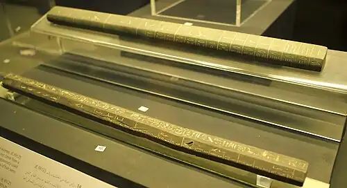 - ↑ Nora E. Scott, « Egyptian Cubit Rods », The Metropolitan Museum of Art Bulletin, vol. 1, no 1, , p. 70–75 (ISSN 0026-1521, DOI 10.2307/3257092, lire en ligne, consulté le )
