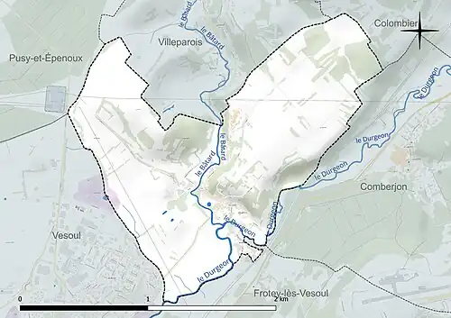 Les communes limitrophes sont Colombier, Comberjon, Frotey-lès-Vesoul, Pusy-et-Épenoux, Vesoul et Villeparois.
