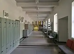 - ↑ « Guideline for Square Footage Requirements for Educational Facilities », Georgia Department of Education (consulté le ) : « The minimum clear width of corridors shall be 8 feet when serving 2 or more IUs. Corridors, where lockers will be installed, shall be a minimum clear width of 9 feet if the lockers are on one side only. If there are to be lockers on both sides, the corridor must be at least 10 feet wide. »