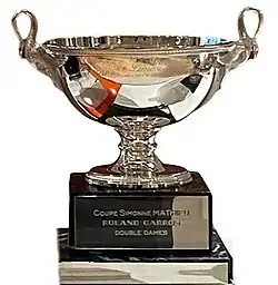 La coupe actuelle a été créée en 1990, à la suite d'un appel d'offres de la Fédération française de tennis (FFT) remporté par le joaillier Mellerio dit Meller[1]. Elle représente un trophée rond est agrémenté de deux petites anses en forme de cygne et de moulures en feuille d’eau[2]. Les tenantes du titre actuels sont Sara Errani et Jasmine Paolini. Chaque vainqueure remporte une de ses répliques 2 fois plus petites, l'original restant propriété de la FFT et reste exposé au Tenniseum sur le stade Roland Garros.