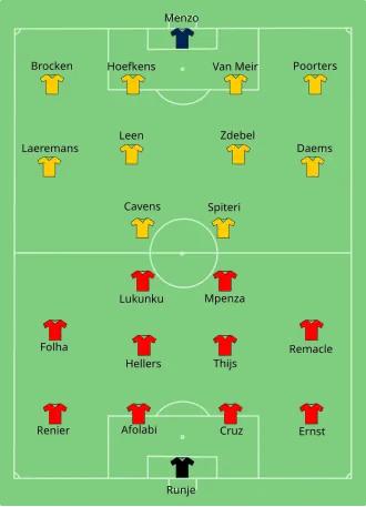 | Lokeren (D1) | 0 - 5 | Standard de Liège (D1) | 0 - 2 | 0 - 3 |