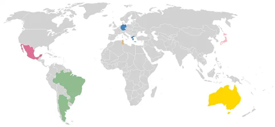 La carte suivante représente les nations qualifiées dans les différentes confédérations continentales :