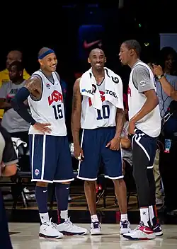 - les Américains Kobe Bryant (Lakers de Los Angeles), LeBron James (Cavaliers de Cleveland), Carmelo Anthony (Knicks de New York), Kevin Love (Cavaliers de Cleveland), Chris Paul (Clippers de Los Angeles), Blake Griffin (Clippers de Los Angeles), Dwight Howard (Rockets de Houston), LaMarcus Aldridge (Trail Blazers de Portland)[29], Russell Westbrook (Thunder d'Oklahoma City)[30], Kawhi Leonard (Spurs de San Antonio)[31], Paul George (Pacers de l'Indiana)[32] et Kevin Durant (Thunder d'Oklahoma City)[33] ;