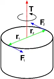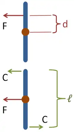 Inversement, un « couple de forces » formé de deux forces et , d'intensité égales et de sens opposés, s'exerçant dans un plan en deux points séparés d'une distance , conduit à une accélération angulaire mais n'entraîne pas d'accélération linéaire.