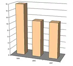 - ↑ Le taux d'activité était de 73,4 % en 1999 et 75,7 % en 2005.