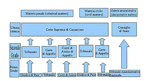 - du Tribunale ordinario (affaires civiles ou pénales, sauf si le Tribunal a jugé en appel sur un jugement du Juge de Paix) ;