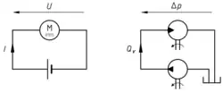 Tous les vecteurs d’énergie comme les circuits hydrauliques, les courroies ou les chaines, les arbres de transmission peuvent permettre de faire des analogies avec un circuit électrique. En général, on peut comparer entre elles les grandeurs d’effort : tension électrique, pression, tension mécanique ou couple et comparer les grandeurs de flux : intensité du courant, débit, vitesse de déplacement ou fréquence de rotation. Ces analogies sont largement utilisées dans les graphe de liaisons.