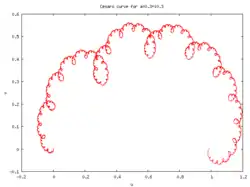 Les courbes de Cesàro, également connues sous le nom de courbes de Cesàro – Faber ou courbes en C de Lévy, sont des courbes de De Rham générées par des transformations affines conservant l'orientation, avec des points fixes en et .