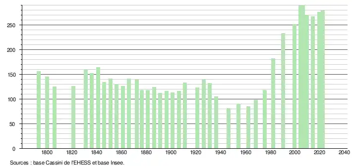 - ↑ Fiches Insee - Populations de référence de la commune pour les années 2006, 2007, 2008, 2009, 2010, 2011, 2012, 2013, 2014, 2015, 2016, 2017, 2018, 2019, 2020, 2021 et 2022.