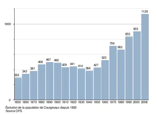 Le graphique suivant résume l'évolution de la population de Courgevaux entre 1850 et 2008[4] :