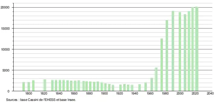 20 020 hab. (2022 en évolution de −0,53 % par rapport à 2016)