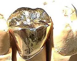 Le terme couronne désigne aussi par extension la couronne prothétique, une prothèse dentaire permettant de protéger une dent qui est vivante ou non (dévitalisée). Elle recouvre la partie de la dent restante en reconstituant la partie coronaire, ce qui préserve la dent de nouvelles agressions, tout en évitant son extraction et son remplacement complet.