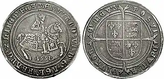 Les premières couronnes frappées en argent furent, elles, produites sous le règne d'Édouard VI d'Angleterre, de 1547 à 1553, et pesaient chacune un peu moins d'une once troy. Elle est contemporaine du thaler impérial[2].
