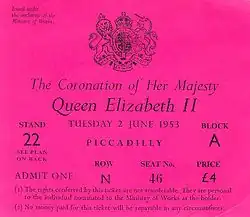 La grand-mère d'Élisabeth, la reine Mary décéda le ; ayant déclaré dans son testament que sa mort ne devrait pas affecter la planification du couronnement, l'événement se déroula donc comme prévu initialement. Il fut estimé à 1 570 000 livres sterling (environ 43 427 400 livres sterling en 2019), qui comprenait des stands le long du parcours du cortège pour accueillir 96 000 personnes, des toilettes, des décorations de rues, des tenues, la location de voitures, les réparations des carrosses et des modifications aux insignes royaux.