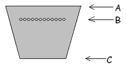 La mesure d'une longueur de courroie dépend du type de section et du constructeur : la mesure de longueur peut en effet être effectuée à l'intérieur, à l'extérieur, ou bien sur la primitive. Pour dire où la mesure est faite, la nomenclature désigne par :