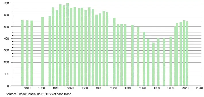 - ↑ Fiches Insee - Populations de référence de la commune pour les années 2006, 2007, 2008, 2009, 2010, 2011, 2012, 2013, 2014, 2015, 2016, 2017, 2018, 2019, 2020, 2021 et 2022.