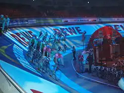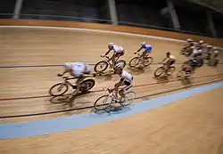 La course à l'américaine est une compétition de cyclisme sur piste se disputant avec des sprints intermédiaires et courue par équipes de deux coureurs. Le classement s’établit à la distance et aux points gagnés par les coureurs.