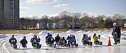 La course sur luge est un handisport dérivé du patinage de vitesse qui est pratiqué par des handicapés moteurs.