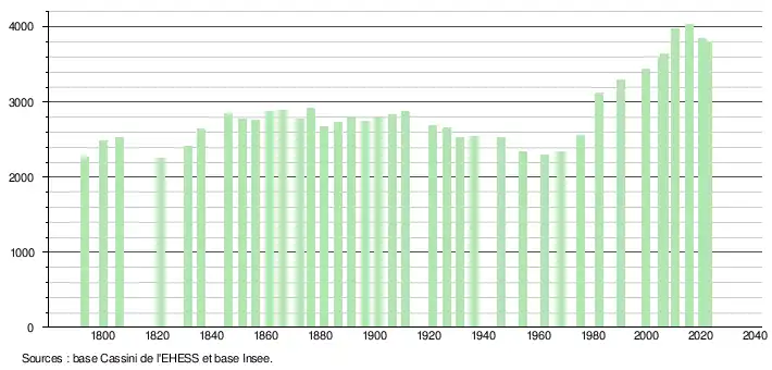 3 799 hab. (2022 en évolution de −5,85 % par rapport à 2016)