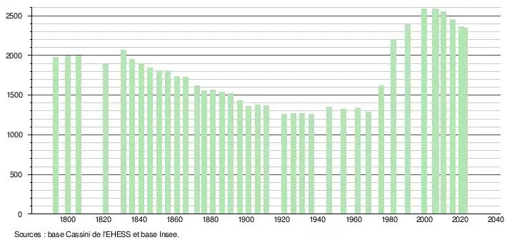 - ↑ Population municipale de référence en vigueur au 1er janvier 2025, millésimée 2022, définie dans les limites territoriales en vigueur au 1er janvier 2024, date de référence statistique : 1er janvier 2022.