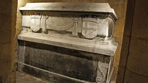 La crypte fait cinq mètres sur sept. Elle est structurée en trois nefs de deux travées. L'une de ces nefs a une voûte en berceau. Les deux autres sont dans un style gothique tardif, avec des voûtes d'ogive et pile centrale d'ordre toscan. Une voûte porte la date de 1662, date de fin d'aménagement.