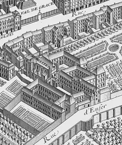 Le monastère était situé en face du Val-de-Grâce, au niveau de l'actuel 284 de la rue Saint-Jacques, en partie à l'emplacement du lycée Lavoisier jusqu'à la rue Henri-Barbusse, à l'époque rue d'Enfer.