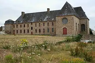 Le couvent s'articule autour d'un cloître dont il manque la moitié du côté oriental. Les bâtiments, construits en appareil mixte pierre de taille granite et moellon de schiste[6], sont composés d'un rez-de-chaussée à galerie sur le cloître, d'un étage carré et de deux étages de combles ; le premier est éclairé par des gerbières à fronton, alternativement triangulaires et circulaires sur le cloître, le second par des outeaux. Le toit est à long pan en ardoise.