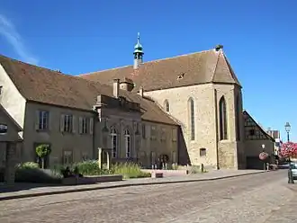 Les bâtiments du couvent étaient constitués de trois ailes, est, sud et ouest qui encadraient avec l'église un espace fermé rectangulaire, le cloître (environ 30 m x 24 m). La façade principale, qui donne sur la rue à l'est, présente un avant-corps de style néo-classique avec des parements en grès, grandes fenêtres à balustrade, et un imposant fronton à blason, qui rappelle la fonction judiciaire de l'édifice (tribunal cantonal jusqu'en 1959). Depuis 2012, l'aménagement du parvis[9] met en valeur l'élégance de l'ensemble de cette façade qui s'appuie sur le chevet médiéval de l'église à droite.