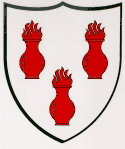 D'argent à trois vases de gueules mal ordonnés d'où s'élève une flamme naturelle.