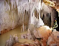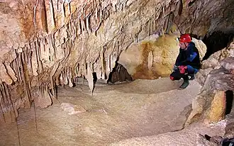 La partie anciennement connue est le premier secteur étudié ; c'est là que situe la salle d'entrée dans laquelle débouche le puits artificiel d'environ 6 m de profondeur. Tout autour de la salle d'entrée, on peut descendre à différents endroits jusqu'à des siphons et une série de petits lacs d'eaux saumâtres. À l'est, se trouve un grand gour peu profond qu'il faut traverser pour accéder à un petit puits. À sa base, commence la galerie dite Pista Americana qui se termine dans la salle du Mondmilch.
