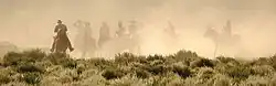 Les facteurs climatiques et sociaux provoquent également une mutation du métier. L'hiver 1886-1887 est très rude : le cheptel est décimé (1 000 000 de bêtes périssent[21]), scène immortalisée dans le tableau de Charles Russel, jeune cow-boy qui en fut témoin, le dernier des 5000. De plus, en 1882, 1883 et 1884 des grèves de cow-boys ont lieu afin de réclamer de plus hauts salaires.