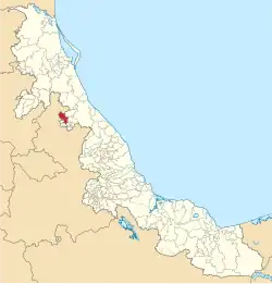 Cette municipalité est limitrophe au nord et au nord-ouest, dans l'État de Puebla, de celles de Venustiano Carranza, de Jalpan, de Xicotepec et de Zihuateutla, à l'ouest et au sud-ouest, dans l'État de Veracruz, de celles de Coahuitlán, de Filomeno Mata et de Mecatlán, au sud de celles de Chumatlán et de Coxquihui, et à l'est de celles d'Espinal et de Coatzintla[1].