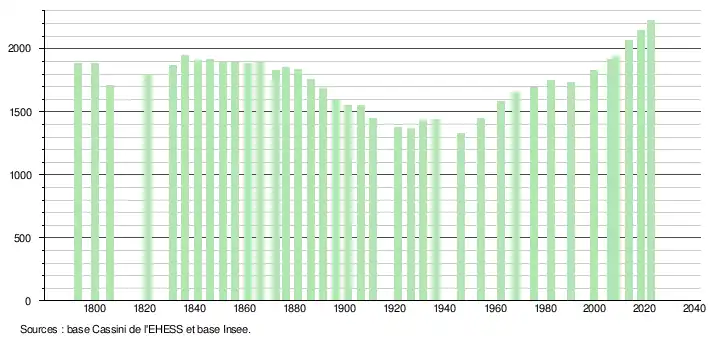 - ↑ Fiches Insee - Populations de référence de la commune pour les années 2006, 2007, 2008, 2009, 2010, 2011, 2012, 2013, 2014, 2015, 2016, 2017, 2018, 2019, 2020, 2021 et 2022.