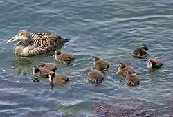 - ↑ (en) Munro, J. et J. Bédard, « Crèche Formation in the Common Eider », The Auk, University of California Press on behalf of the American Ornithologists’ Union, vol. 94, no 4, , p. 759-771 (ISSN 1938-4254 et 0004-8038)