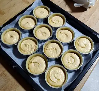 Elle est composée de beurre en pommade, de poudre d'amandes, de sucre, d'œufs, de farine[réf. souhaitée], le tout fouetté à froid. Elle est traditionnellement parfumée au rhum.