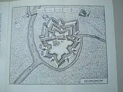 Aperçu du fort au XVIIIe siècle dans l'"Atlas Schoemaker" (1710) localisé en Gueldre.