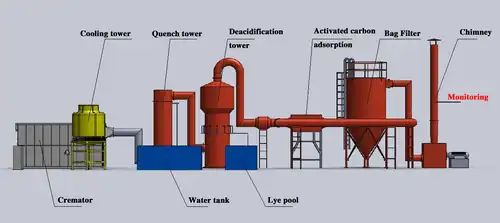 Des systèmes de filtration (filtre à manches) sont appliqués ou obligatoires aux crématoriums, plus ou moins utilisés selon les pays. L'adsorption sur charbon activé est envisagée, pour réduire la pollution mercurielle notamment. Ces technologies de filtration sont empruntées à l'industrie de l'incinération des déchets.